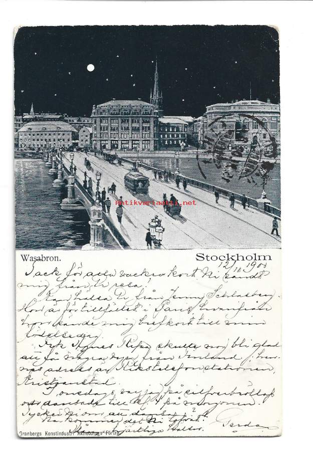 Tukholma StockholmWasabron kuutamokortti -postikortti paikkakuntapostikortti kulkenut 1900 merkki pois