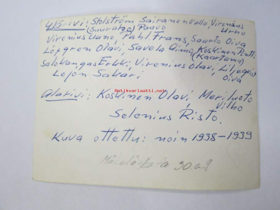 Paloauto, palomiehiä (kaikki nimetty, kirjoitettu kuvan tasutapuolelle, kuvaustietona; "otettu noin v. 1938-39" -valokuva