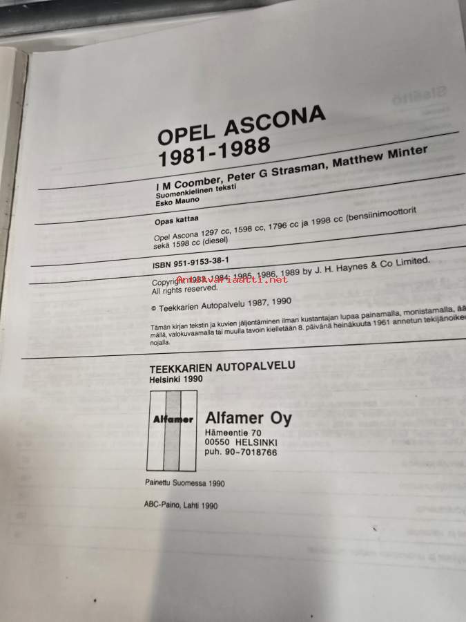 Opel Ascona Käyttö Turvallisuus Huolto - 1985