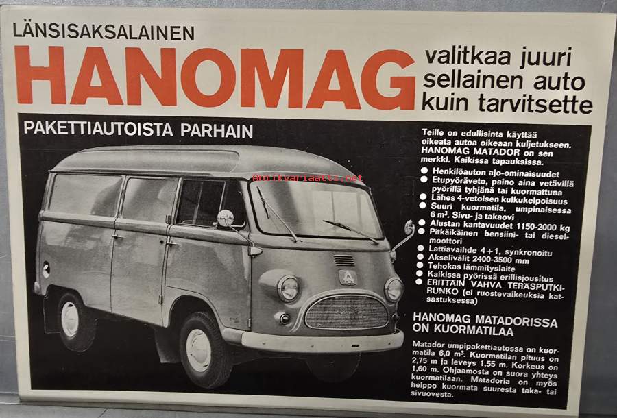 Hanomag matador pakettiauto myyntiesite. 1967