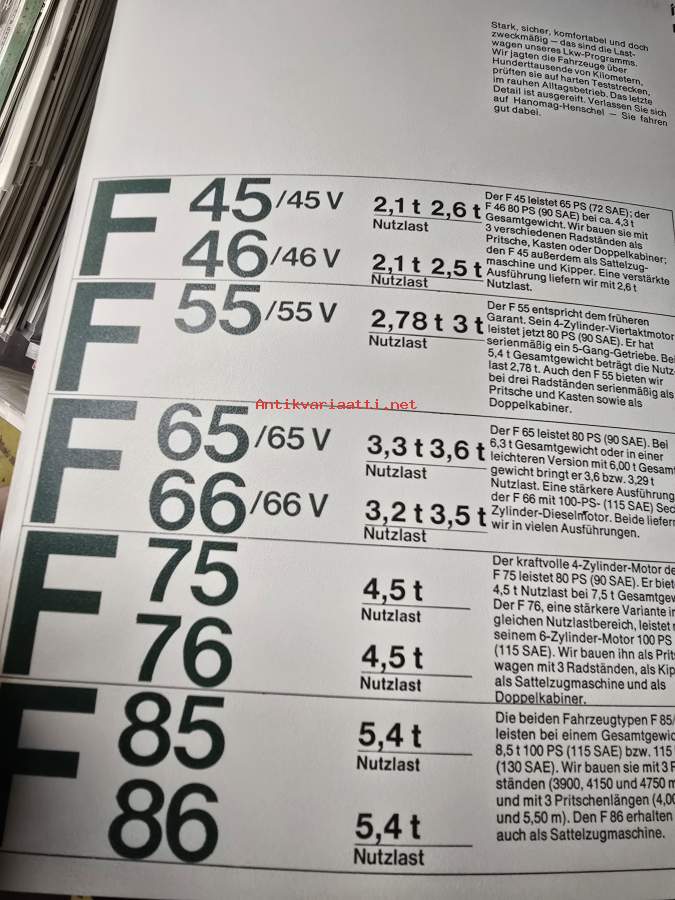 Hanomag-Henschel Dropsiders F 20, F 25, F 30, F 35 -sales brochure / myyntiesite