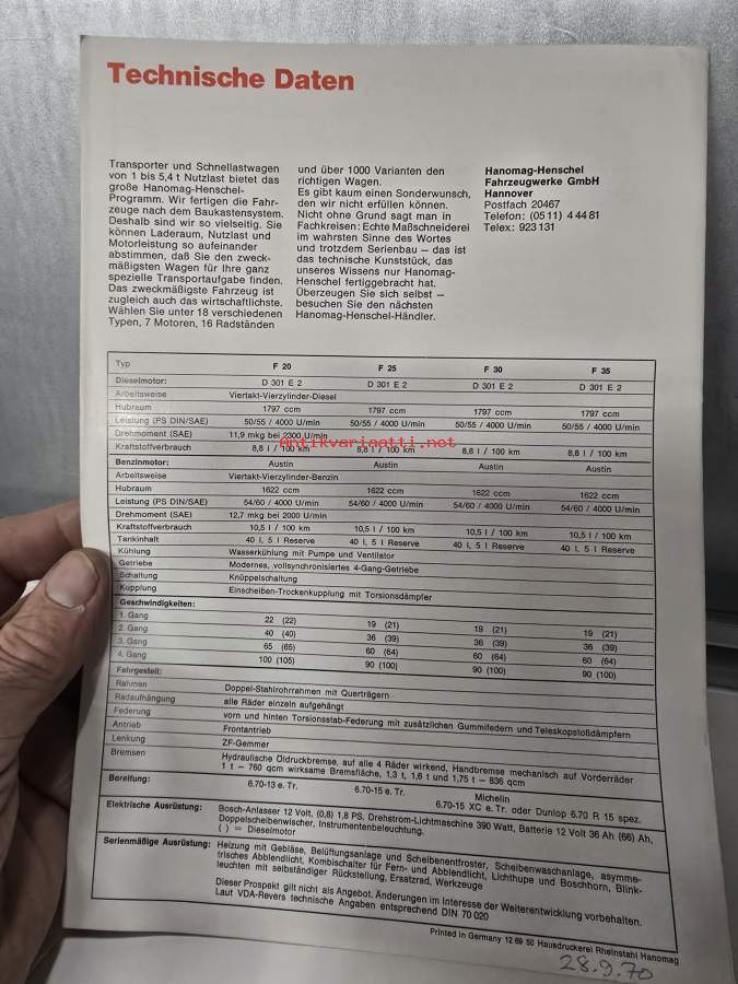 Hanomag-Henschel F 20, F 25, F 30, F 35 utility vans light-duty truck line -sales brochure / myyntiesite