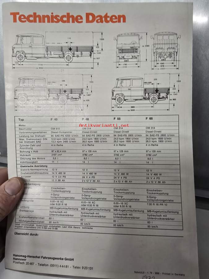 Hanomag-Henschel F 20, F 25, F 30, F 35 utility vans light-duty truck line -sales brochure / myyntiesite