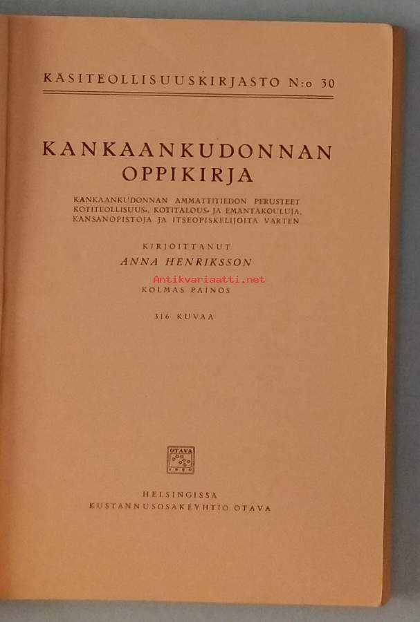 Kankaankudonnan oppikirja. ( Käsityöalan perusteos, kotikudonta, käsityökulttuuri, 30-luku )