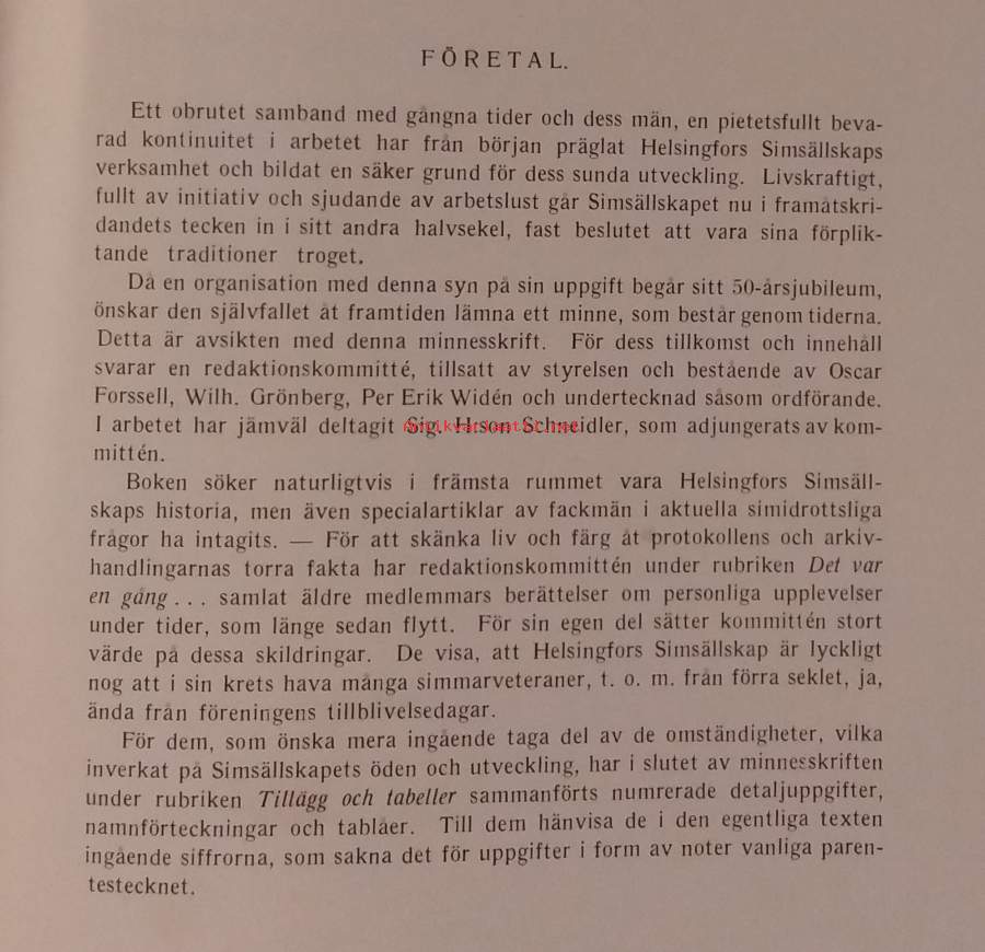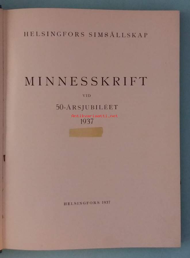 Helsingfors Simsällskap Minnesskrift vid 50-årsjubiléet 1937. ( Seurahistoriikki )
