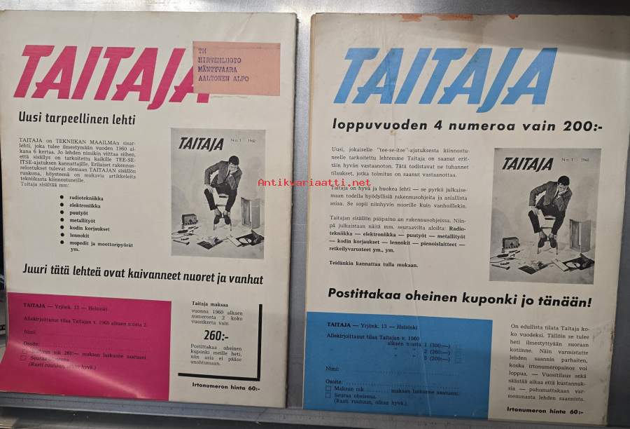 Taitaja lehdet n,o 1, 2, 3 ja 6 1960