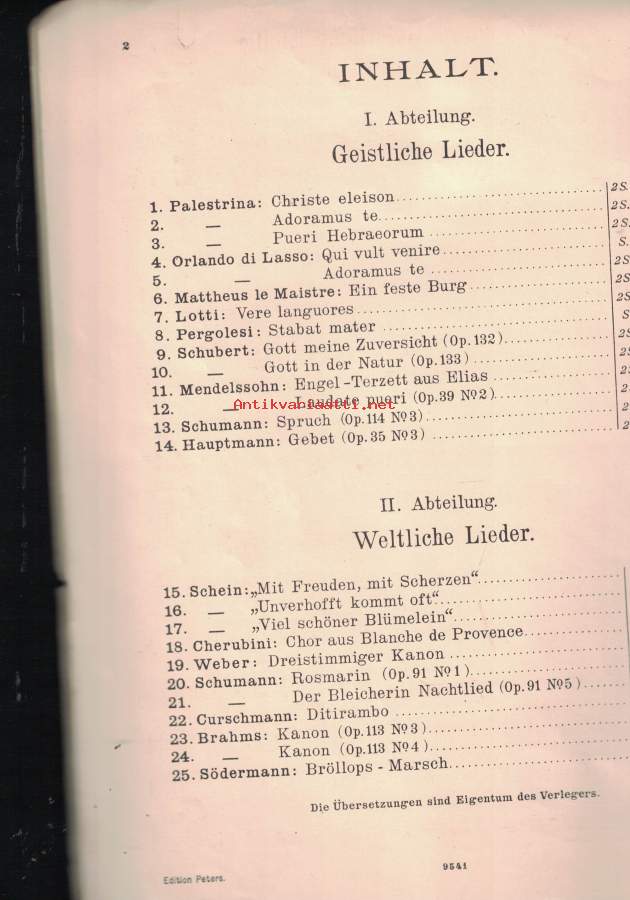 Palestrina, Pergolesi, di Lasso, Lotti, Schumann ym.
