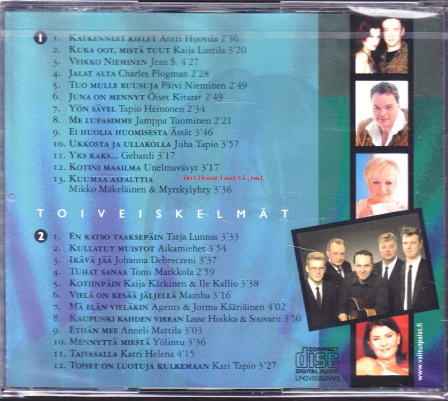 **1-1 Antti Huovila– Katkenneet Kielet2:36**1-2 Kaija Lustila– Kuka Oot, Mistä Tuut3:20**1-3 Jean S.*– Veikko Nieminen4:27**1-4 Charles Plogman– Jalat Alta2:28**1-5 Päivi Nieminen– Tuo Mulle Ruusuja2:49**1-6 Öiset Kitarat– Juna On Mennyt2:49**1-7 Tapio Heinonen– Yön Sävel2:34**1-8 Jamppa Tuominen– Me Lupasimme2:21**1-9 Ässät– Ei Huolia Huomisesta3:46**1-10 Juha Tapio– Ukkosta Ja Ullakolla3:57**1-11 Gebardi*– Yks Kaks...3:17**1-12 Unelmavävyt– Kotini Maailma3:17**1-13 Mikko Mäkeläinen & Myrskylyhty– Kuumaa Alfalttia3:36**2-1 Tarja Lunnas– En Katso Taaksepäin3:33**2-2 Aikamiehet– Kullatut Muistot3:54**2-3 Johanna Debreczeni– Ikävä Jää3:37**2-4 Tomi Markkola– Tuhat Sanaa2:59**2-5 Kaija Kärkinen & Ile Kallio– Kotiinpäin3:38**2-6 Mamba (4)– Vielä On Kesää Jäljellä3:16**2-7 Agents & Jorma Kääriäinen– Mä Elän Vieläkin4:02**2-8 Lasse Hoikka & Souvarit– Kaupunki Kahden Virran3:50**2-9 Anneli Mattila– Ethän Mee3:03**2-10 Yölintu– Mennyttä Miestä3:36**2-11 Katri Helena– Taivasalla4:15**2-12 Kari Tapio– Toiset On Luotuja Kulkemaan3:27**