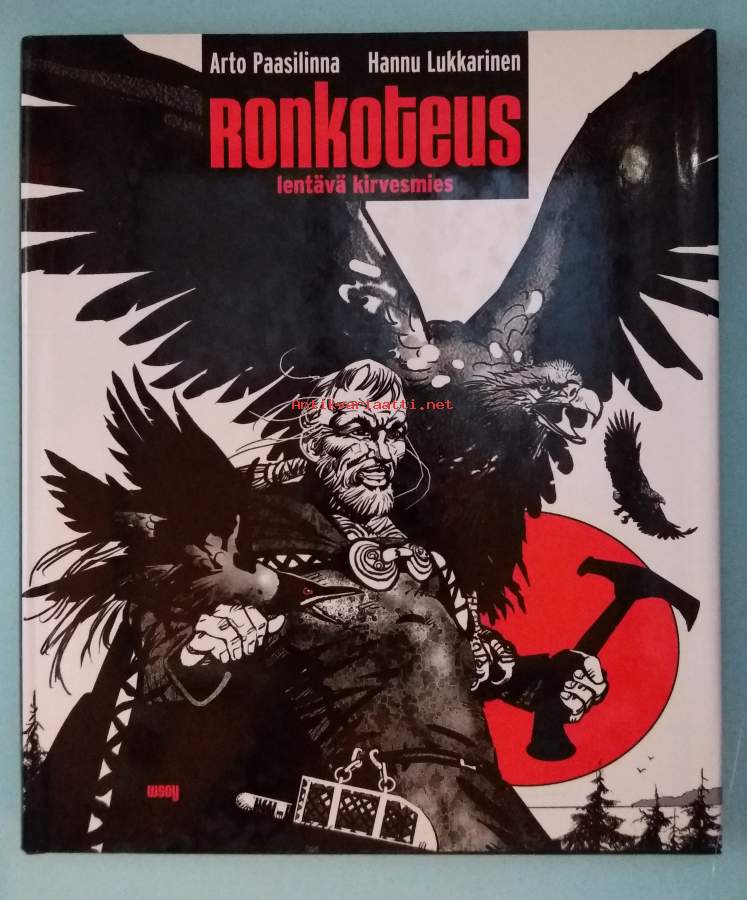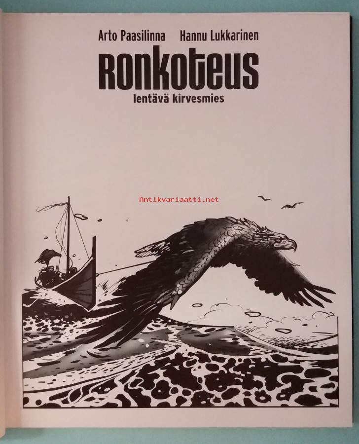 Paasilinnan käsikirjoittama ja Hannu Lukkarisen piirtämä ( musta-valko) sarjakuvasovitus Ronkoteus – lentävä kirvesmies vie lukijansa aikaan noin 1000 eaa. . Päähenkilön rakentaman lentolaitteen avulla käydään lisäksi muun muassa Keski-Euroopassa ja Assyriassa. Kirjassa on alaviitteinä vakavasti otettavaa tietoa. Dimensiot 30 ¤ 26 cm