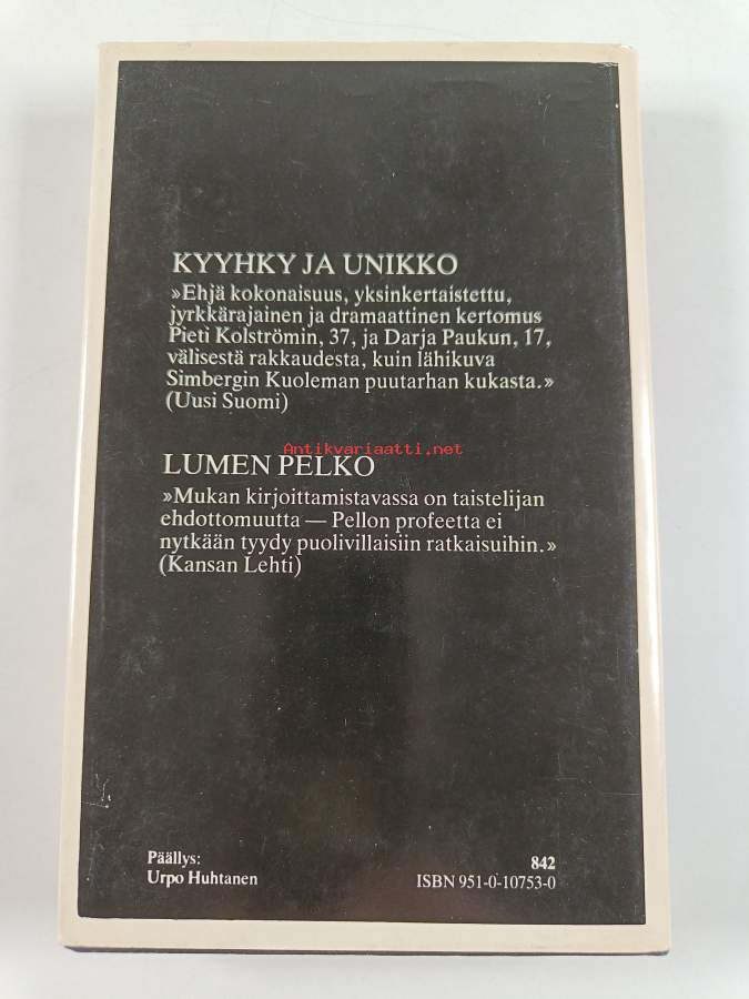Hyvä. Tarkempi kuntoluokka: K3- ; Pienoista tahraisuutta, hieman kulumaa kansissa, pienoista kolhua alakulmissa, selkämyksessä hieman vinoutta. Kansipaperin kunto: pientä kulumaa