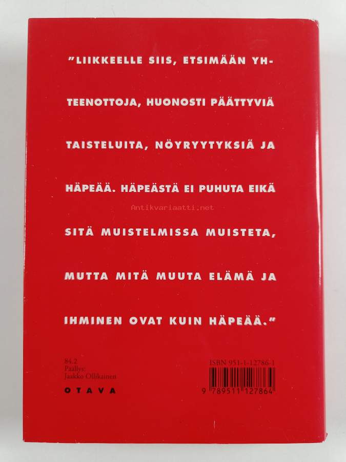 Erinomainen. Tarkempi kuntoluokka: K4- ; Pienoista kulumaa kansissa. Kansipaperin kunto: jonkin verran kulumaa/pienoisia repeämiä