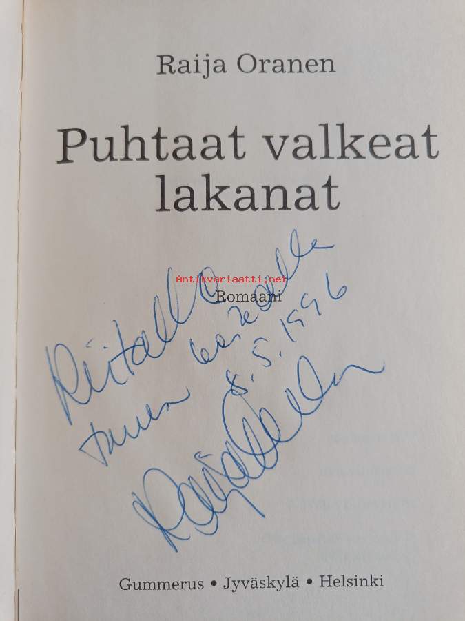 Puhtaat valkeat lakanat (signeerattu, tekijän omiste)