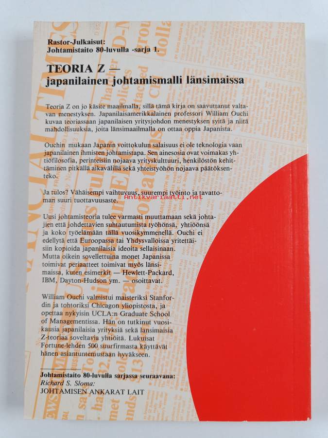 Muu(t) tekijä(t): Veikko RumpunenSarja: Rastor-julkaisut, Johtamistaito 80-luvulla -sarja 1Alkuteos: Theory Z