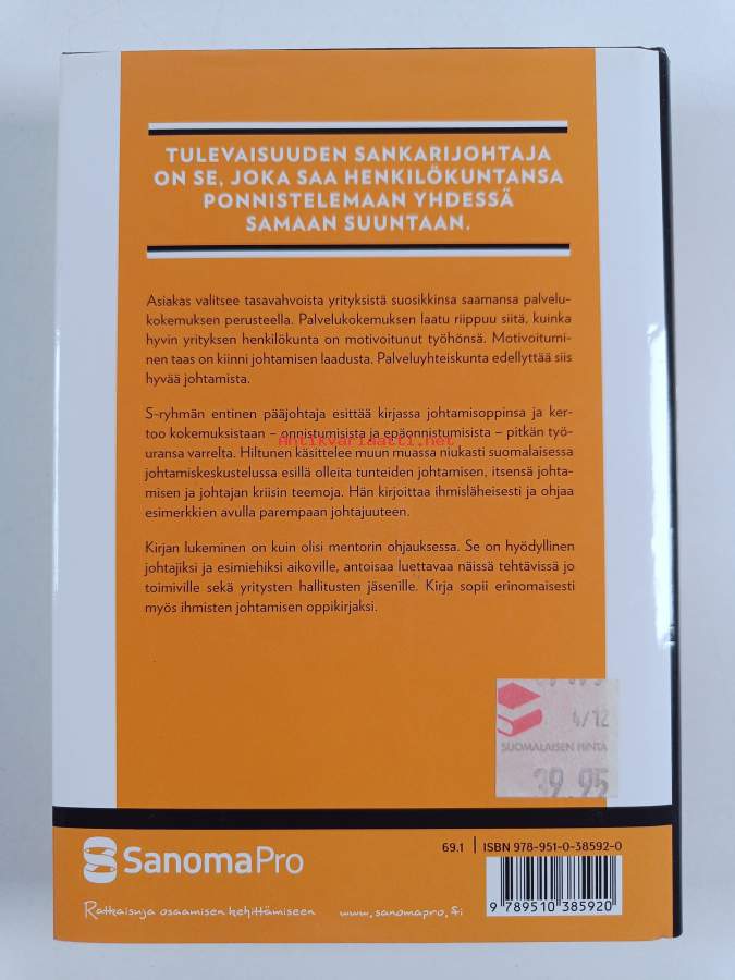 Hyvä. Tarkempi kuntoluokka: K3+ ; Hieman kulumaa kansissa, takana vanha hintalappu, selkämyksessä hieman vinoutta. Kansipaperin kunto: pientä kulumaa