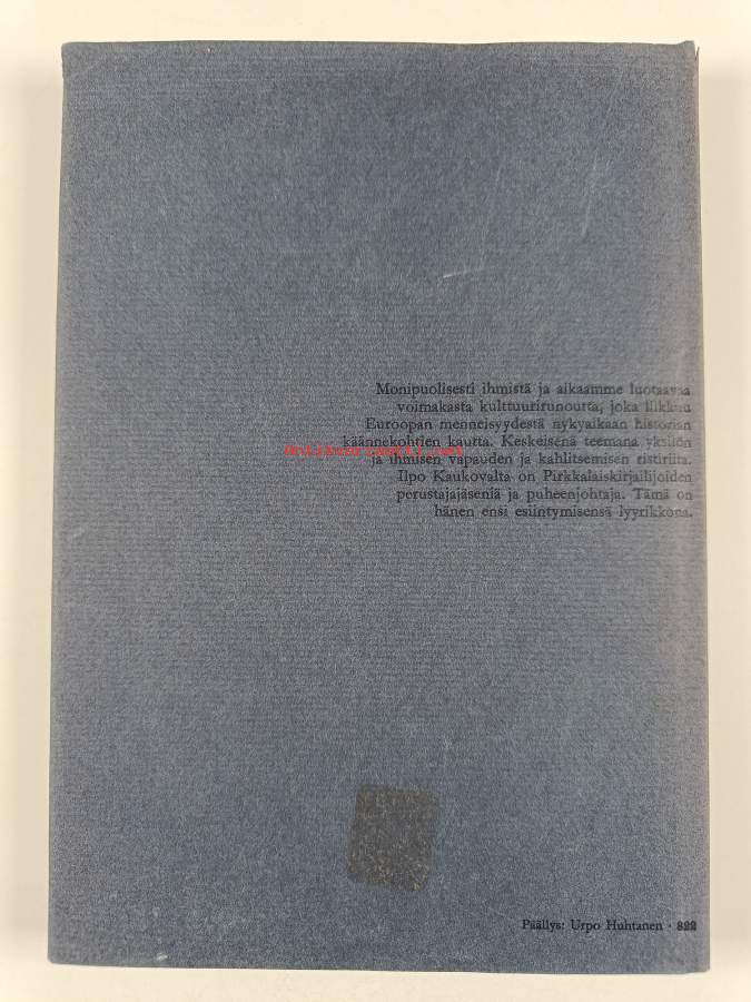 Erinomainen. Tarkempi kuntoluokka: K4- ; Pienoista kulumaa kansissa, takana hintalapun jäämää. Kansipaperin kunto: jonkin verran kulumaa/pienoisia repeämiä