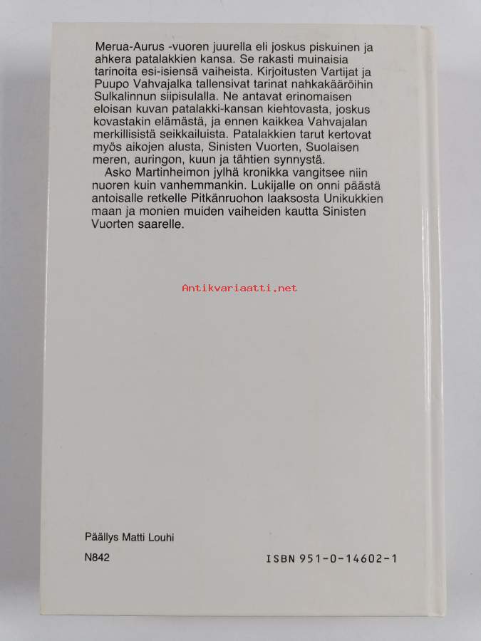 Hyvä. Tarkempi kuntoluokka: K3+ ; Pienoista kolhua etukannen yläkulmassa, hieman tahraisuutta alareunassa, selkämyksessä aavistus vinoutta