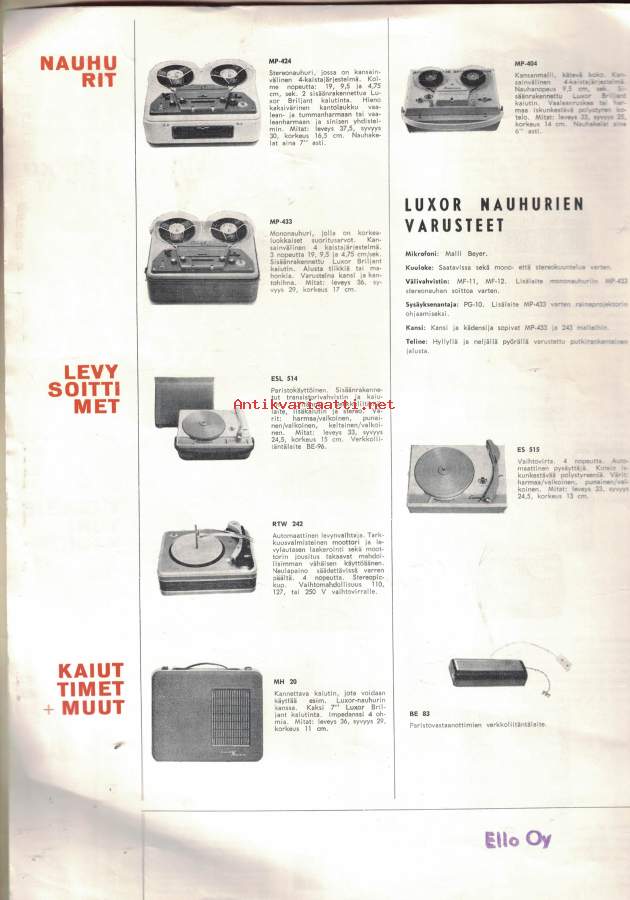 Televisiot - verkkoradiot - transistoriradiot - nauhurit - levysoittimet - kaiuttimet. 4s.-Postitus 3,80€