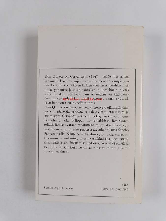 Muu(t) tekijä(t): J. A. Hollo, Yrjö JylhäMerkinnät: omistajamerkintäSarja: Taskukirjasto 146Alkuteos: El ingenioso hidalgo don Quijote de la ManchaAsiasanat: klassikot
