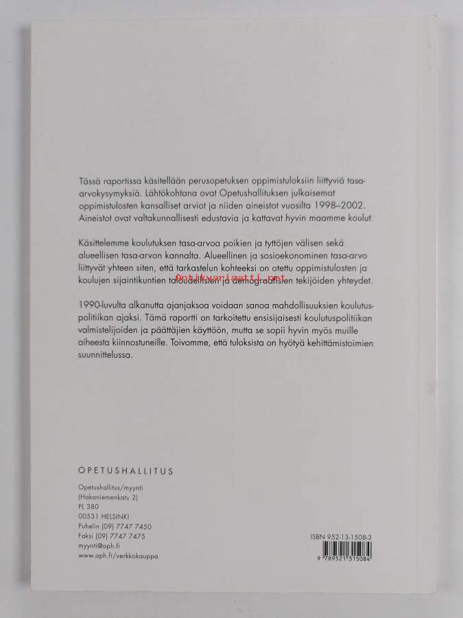 Muu(t) tekijä(t): Jorma KuuselaSarja: Arviointi 7/2002Asiasanat: peruskoulu, sukupuoli, koulutuspolitiikka, yhdenvertaisuus, alueelliset erot