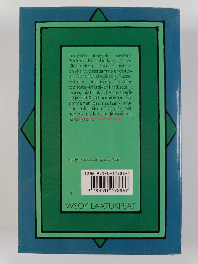 Merkinnät: omistajamerkintäSarja: LaatukirjatAlkuteos: History of western philosophy and its connection with political and social circumstances from the earliest times to the present dayAsiasanat: historia, oppihistoria, filosofia, uusi aika