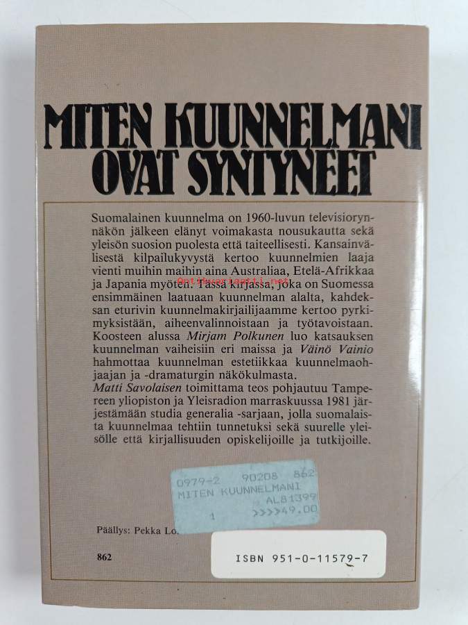 Muu(t) tekijä(t): Matti Savolainen, Pirkko JaakolaMerkinnät: omistajamerkintäAsiasanat: kuunnelmat