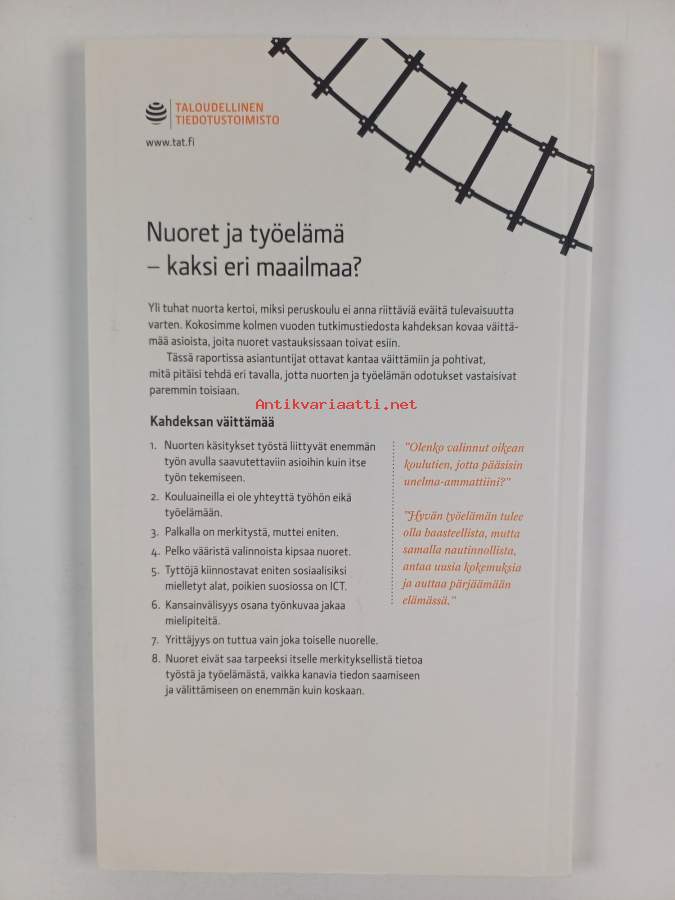 Muu(t) tekijä(t): Kari Väisänen, Katja Lauren ym.Asiasanat: nuoret, työelämä, yrittäjyys, ammatinvalinta, sukupuoli, mielipiteet