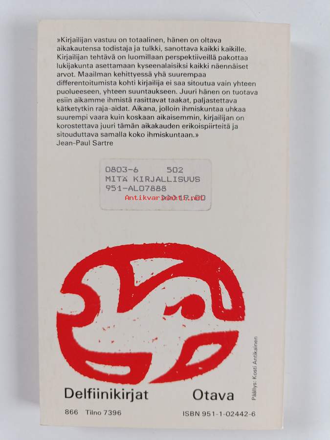 Muu(t) tekijä(t): Pirkko Peltonen, Helvi NurminenSarja: DelfiinikirjatAlkuteos: Qu'est-ce que la litterature