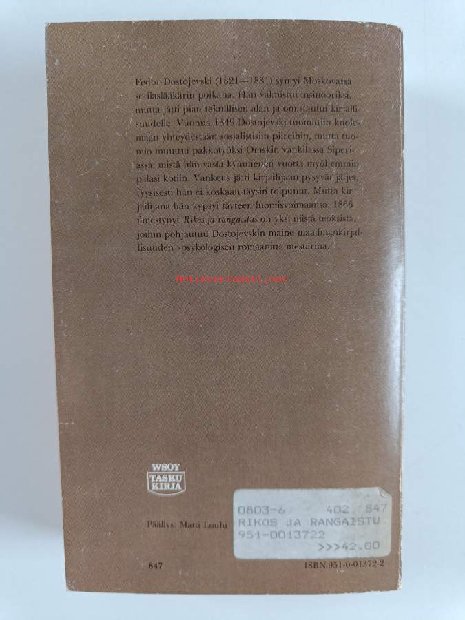 Muu(t) tekijä(t): J. A. HolloSarja: Taskukirjasto 64Alkuteos: Prestuplenie i nakazanieAsiasanat: klassikot, venäläinen kirjallisuus