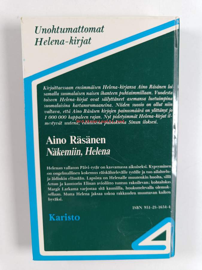Näkemiin Helena, 1977. Kirja kertoo lasten erkaantumisesta vanhemmistaan. Ihmissuhteet ja kaukokaipuu repivät perheen nuoria eri ilmansuuntiin.
