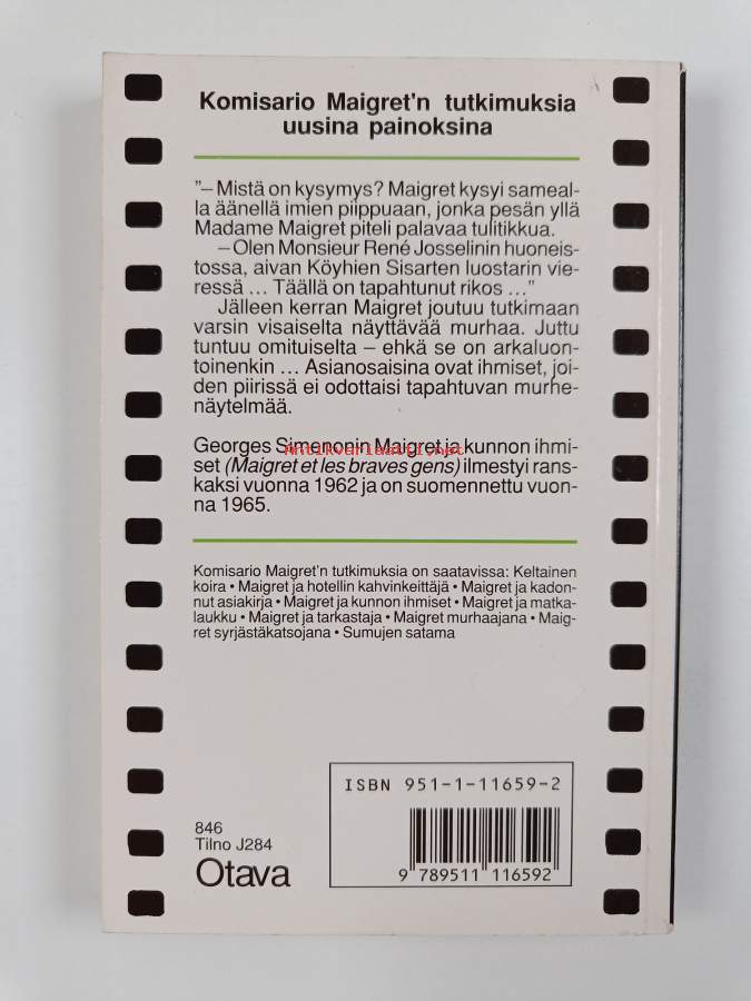 Muu(t) tekijä(t): Irmeli SallamoMerkinnät: omistajamerkintäAlkuteos: Maigret et les braves gens