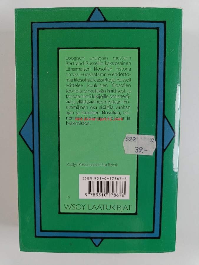 Muu(t) tekijä(t): J A HolloSarja: LaatukirjatAlkuteos: History of western philosophy and its connection with political and social circumstances from the earliest times to the present day