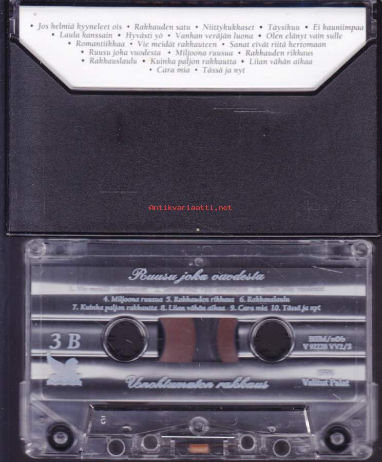 **KappaleetKuka keksi rakkauden:: 1 A Kuka keksi rakkauden, Kaksin rannalla yksinäiset, Sinun silmiesi tähden, Anna mulle tähtitaivas, Kuurankukka, Kotiviini, Tule luo, Onni jonka annoin pois, Ikävä, Jäät sateen taa1 B Älä mee, Lainatut lauseet, Kaksi rakkainta, Sininen on kesäyö, Amore, Sydän tietää, Se on salaisuus, Ei toinen sua saa, Liljankukka, Taas aurinko nousee.2A Ihana aamu, Kauan, Hetki lyö, Liian nuori rakkauteen, Puhu hiljaa rakkaudesta, Onnestain on puolet sinun, Tyttö, Vähän ennen kyyneleitä, Päivän vain, Sympatiaa2 B Kielletyt leikit, Tunti vain, Ehkä suukon antaa saan, Mozart 40, Rakkauden sinfonia, Hymyhuulet, Nosta lippu salkoon, R-A-K-A-S, Kissankultaa, Muisto vain jää3 A Ruusu joka vuodesta: Jos helmiä kyyneleet ois, Rakkauden satu, Niittykukkaset, Täysikuu, Ei kauniimpaa, Laula kanssain, Hyvästi yö, Vanhan veräjän luona, Olen elänyt vain sulle, Romantiikkaa3 B Sävel muistoista: Vie meidät rakkauteen, Sanat eivät riitä kertomaan, Ruusu joka vuodesta, Miljoona ruusua, Rakkauden rikkaus, Rakkauslaulu, Kuinka paljon rakkautta,Liian vähän aikaa, Cara mia, Tässä ja nyt4 A Ollaan lähekkäin: Aamu, Ota lähellesi, Ollaan lähekkäin, Niin sua rakastan, Avaa sydämesi mulle,Iltarusko, Etkö uskalla mua rakastaa, Sulle silmäni annan, Oma kultasein, Pääsi rinnallein painuu4 B-Holvikirkko, Elämältä kaiken sain, Rakkaus on sininen, Joku joka rakastaa, Tahdon olla sulle hellä, Pieni ystäväin, Kerro kuiskaten tunteesi, Vasten auringon siltaa, Yön väistyessä, Sinun omasi.5A Kaipuu: Jos et sä soita, Saat miehen kyyneliin, Mä mistä löytäisin sen laulun, Syksyn sävel, Rakkaus, Kaipuu, Kylmä ilman sua, Rakkauden jälkeen, Niin paljon kuuluu rakkauteen, Tummat silmät, ruskea tukka.5B Hän, Ikuinen ikävä, Katson autiota hiekkarantaa, Näinkö aina meille täällä käy, Aikaan sinikellojen, Suudelmin suljetut kirjeet, Muistathan, Salattu suru, Kuumat kyyneleet, Katson siniseen taivaan
