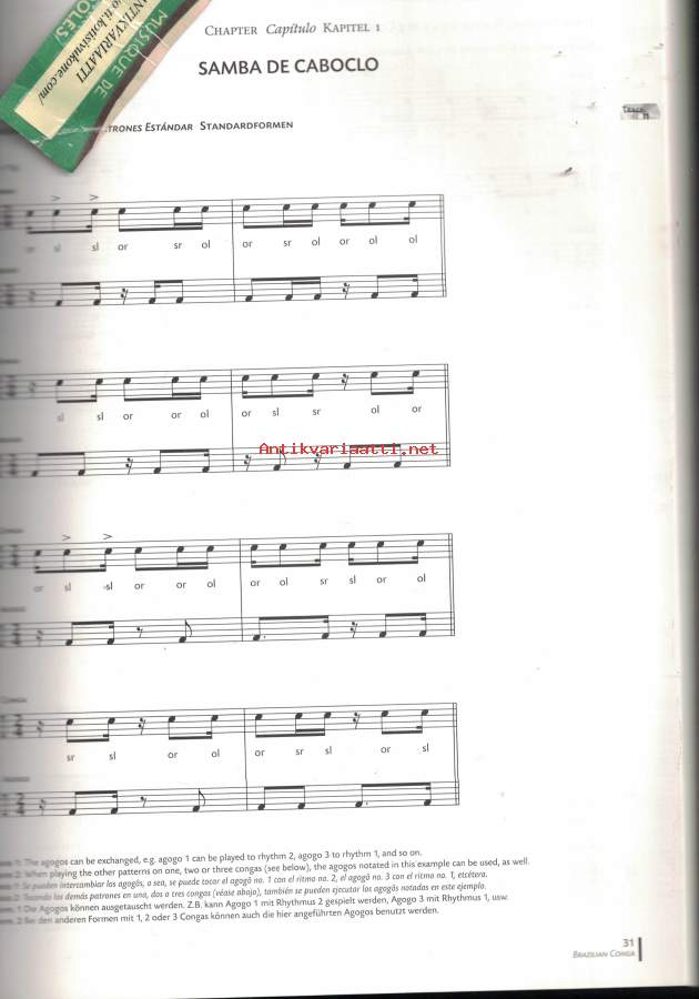 Brazilian Conga opens the door to familiar and to new worlds for the devotees of a fantastic instrument: the Brazilian atabaque with its rhythms adapted to the conga. You will meet some „old acquaintances“ among the typical basic grooves of Brazilian music for 1 conga or timbau (Samba de Caboclo, Barravento, Ijexá or Congo) but also relatively unknown rhythms for 2 or 3 congas, Brazilian rhythms originally not destined to be performed on the atabaque and even modern „pop“ rhythms. Additionally, the method provides coordination exercises and a number of pieces for small percussion ensembles.This book by Gilson de Assis with its accompanying CD, which offers recordings of all the individual grooves, will surely be of great help to both the novice and the experienced percussionist. It will not only lead you to a better understanding of the playing techniques and structures but also help you capture the feeling and prepare the ground for a correct interpretation of the Brazilian atabaque rhythms.-Kirje 1 kg
