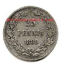 25 penniä 1889 hopeaa