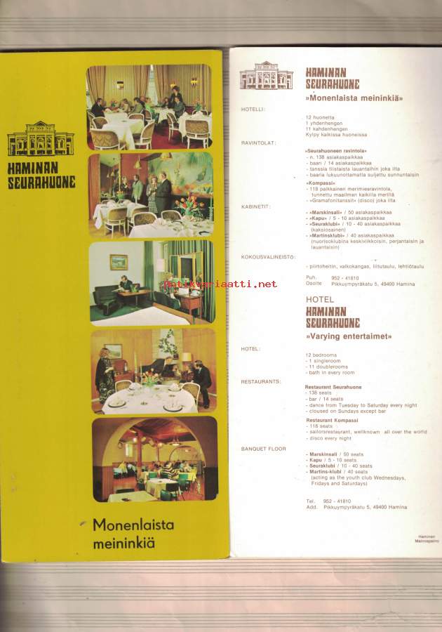 Haminan Seurahuone, esitekortti