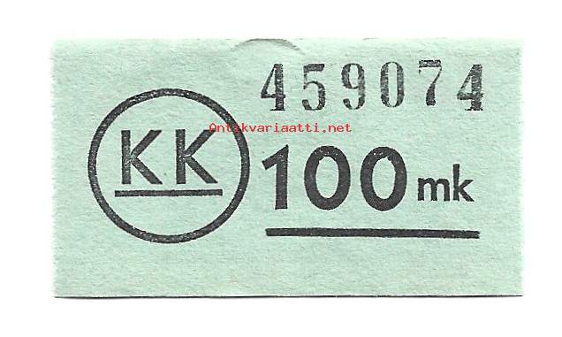 KK Kulutuskuntien Osuusliike 100 mk tilapäinen maksuväline