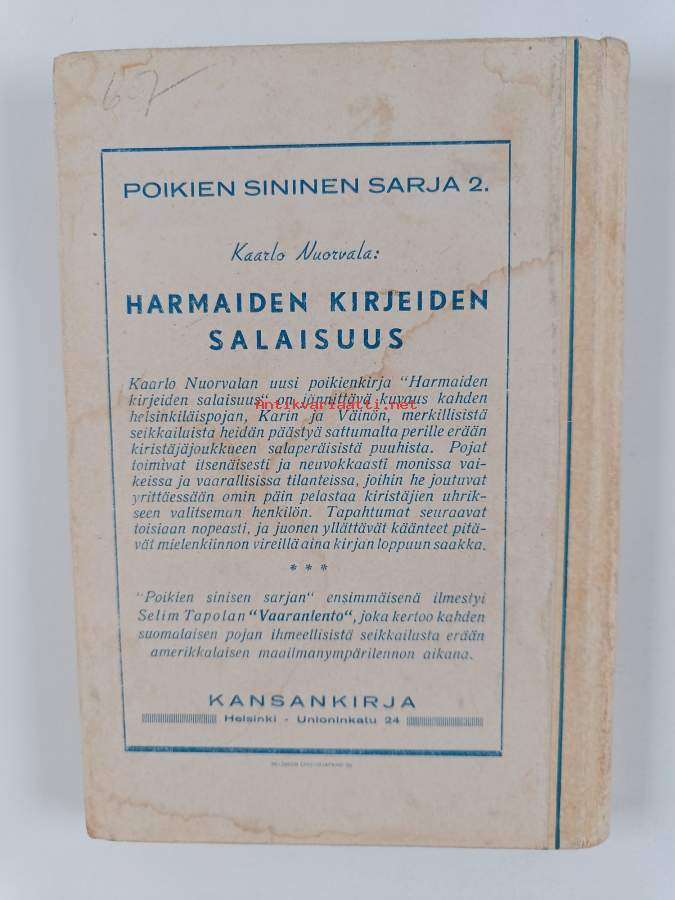 Tyydyttävä. Pientä tahraisuutta, pientä kulumaa, selkämyksessä hieman vinoutta
