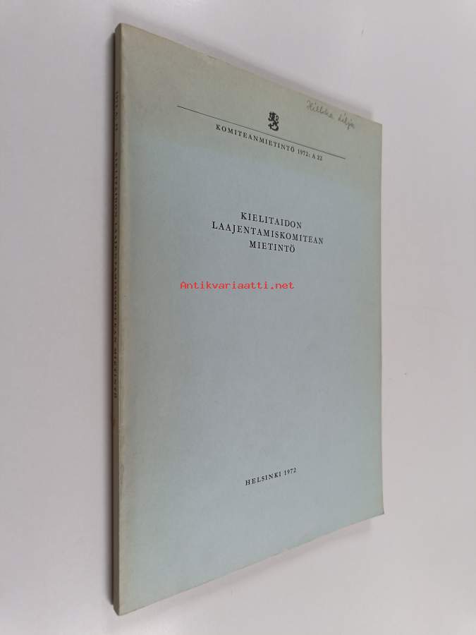 Merkinnät: omistajamerkintäSarja: Komiteanmietintö. A 1972:22Asiasanat: kielitaito