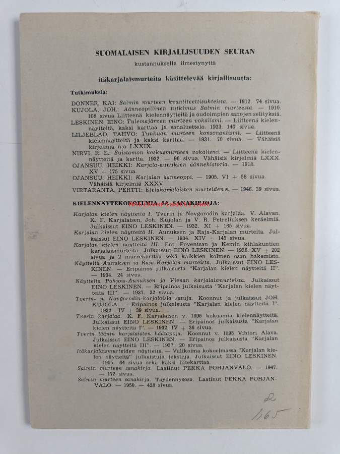 Itäkarjalaismurteiden näytteitäKirjaLeskinen, EinoSuomalaisen kirjallisuuden seura 1956.