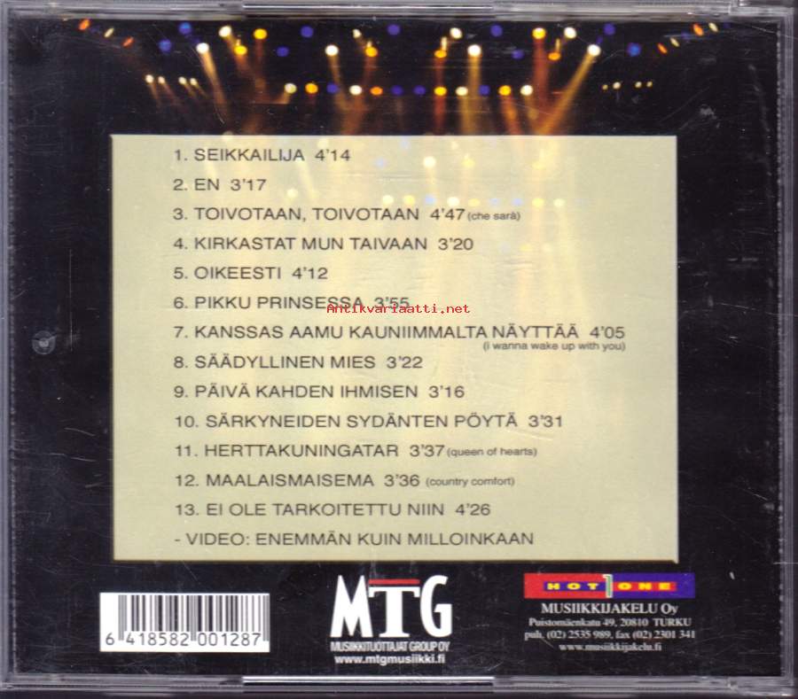 **1 Seikkailija**2 En**3 Toivotaan, Toivotaan**4 Kirkastat Mun Taivaan**5 Oikeesti**6 Pikku Prinsessa**7 Kanssas Aamu Kauniimmalta Näyttää**8 Säädyllinen Mies**9 Päivä Kahden Ihmisen**10 Särkyneiden Sydänten Pöytä**11 Herttakuningatar**12 Maalaismaisema**13 Ei Ole Tarkoitettu Niin**14 Enemmän Kuin Milloinkaan (Video)
