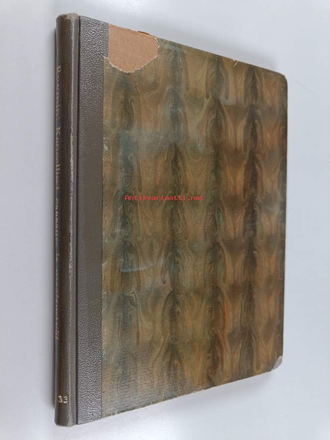 Tyydyttävä. Pientä kulumaa kansissa, selkämyksessä hieman vinoutta, jälkisidos (aikalaissidos, alkuperäiset nidotun version kannet sidottu mukaan), kirjaston poistokirja