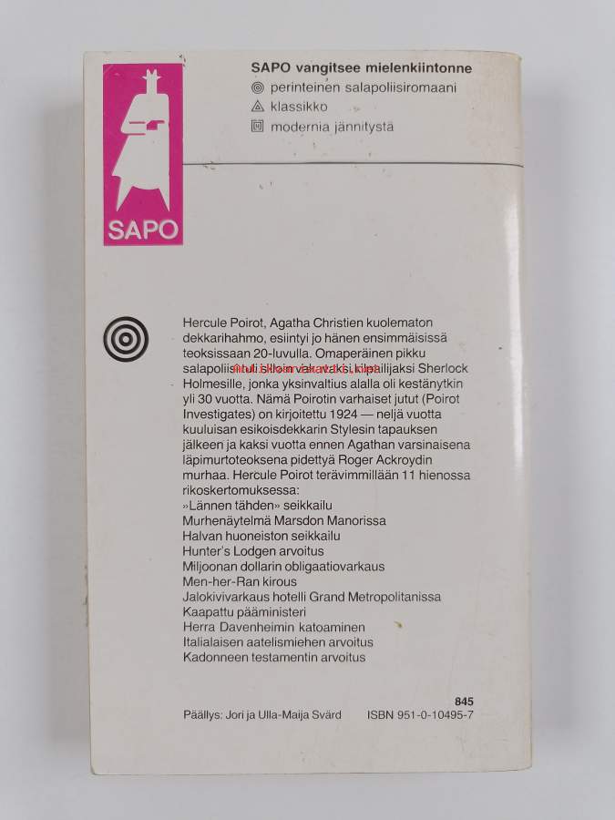Muu(t) tekijä(t): Aulis RantanenSarja: Sapo 263Alkuteos: Poirot InvestigatesAsiasanat: hercule poirot