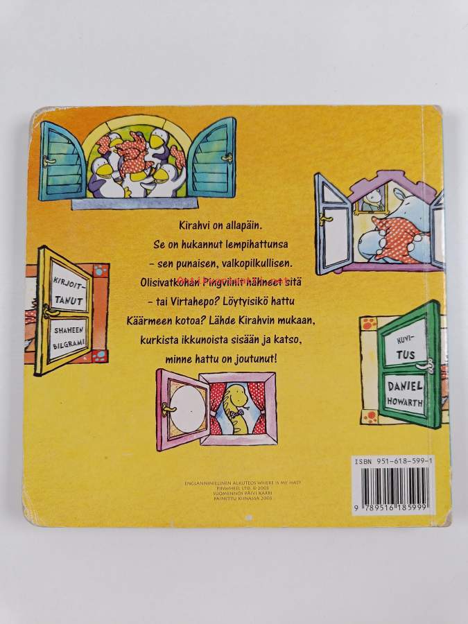 Muu(t) tekijä(t): Päivi Karri, Daniel HowarthAlkuteos: Where is my hat?Asiasanat: kurkistuskirjat, kovalehtiset kirjat