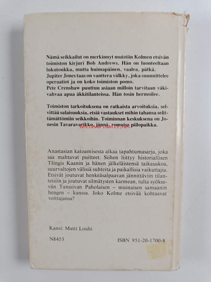 Muu(t) tekijä(t): Alfred Hitchcock, Annikki (suom.) LievonenMerkinnät: omistajamerkintäSarja: Alfred Hitchcock ja kolme etsivää 22Alkuteos: Alfred Hitchcock and the three investigators in the mystery of the dancing devil
