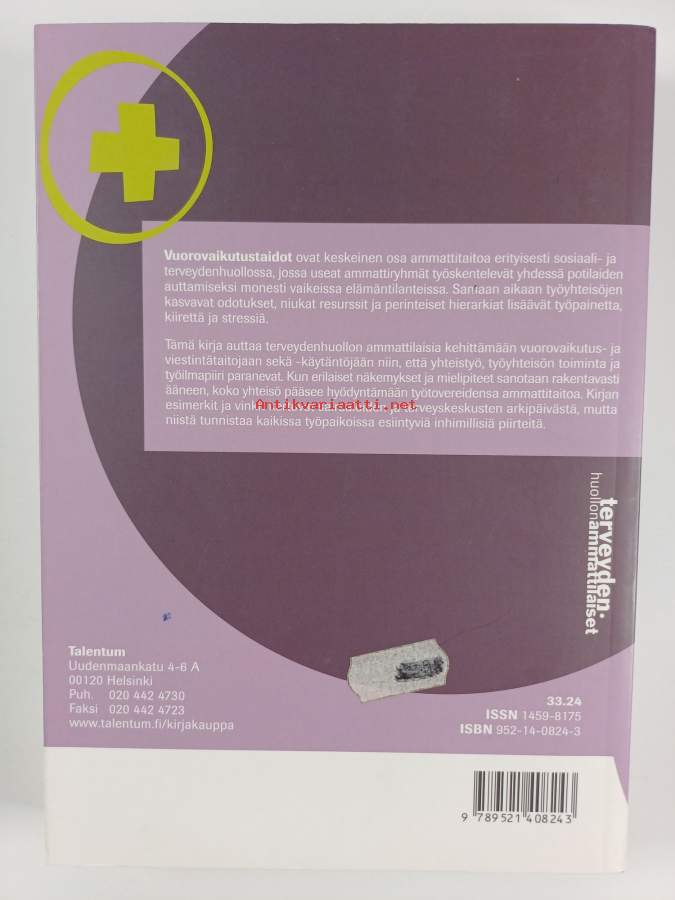 Sarja: Terveydenhuollon ammattilaisetAsiasanat: ihmissuhteet, työelämä, työyhteisöt, ongelmanratkaisu, viestintä, vuorovaikutus, sosiaalinen vuorovaikutus, konfliktit, ristiriidat, työryhmät, terveysala, communication, mänskliga relationer, kommunikation, Nursing Care, arbetsliv, Nursing, konflikter, Social interaktion, Conflict (Psychology), växelverkan, Interpersonal Relations, arbetsgrupper, motsättningar, hälsovårdsbranschen, arbetsgemenskaper, Interprofessional Relations, Empathy, problemlösning, trust