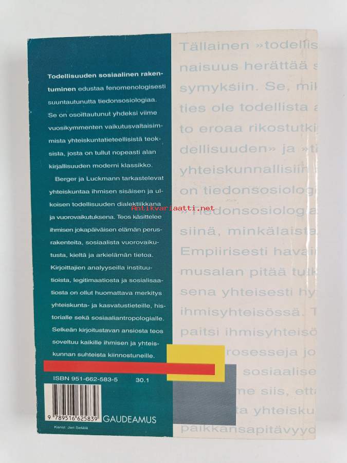 Muu(t) tekijä(t): Tapio Aittola, Vesa RaiskilaAlkuteos: The Social Construction of Reality