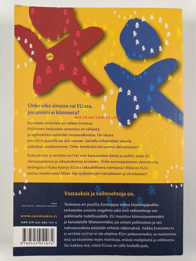 Muu(t) tekijä(t): Hanna Kuusela, Otto BruunAsiasanat: demokratia, talouspolitiikka, integraatio, taloudellinen integraatio, poliittinen integraatio, identiteetti, sosiaalipolitiikka, kestävä kehitys, globalisaatio, eurooppalaisuus, viestintäpolitiikka, kauppapolitiikka, maahanmuuttopolitiikka
