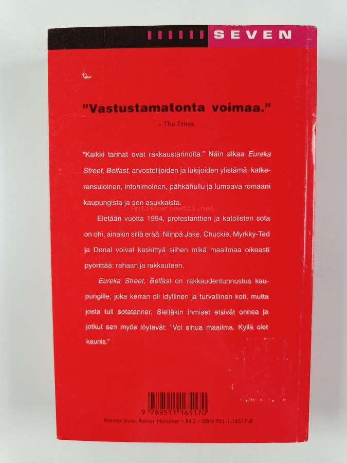 Eureka Street, Belfast, 1998. 1.p.Katkeransuloinen, intohimoinen, pähkähullu ja lumoava romaani Belfastista ja sen asukkaista.