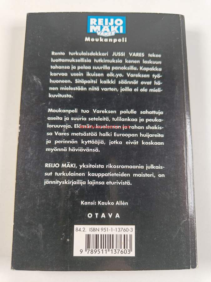 Hyvä. Tarkempi kuntoluokka: K3- ; Pienoista taitejälkeä kansissa, hieman kulumaa, selkämyksessä yksi lukutaite, selkämyksessä hieman vinoutta