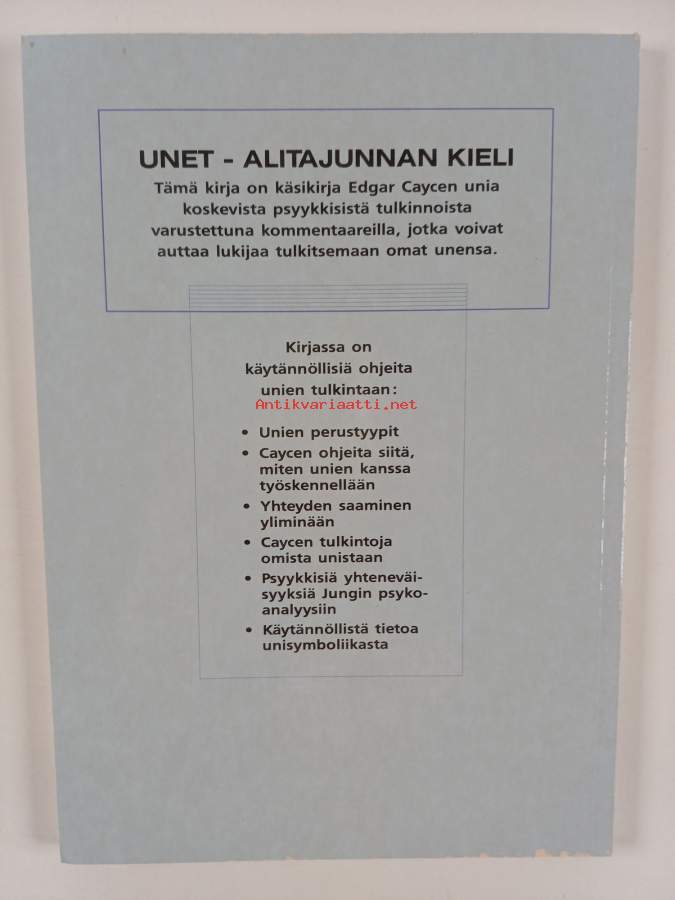 Merkinnät: omistajamerkintä (tarra)Sarja: Edgar Cayce -kirjaAlkuteos: Dreams : the language of unconscious
